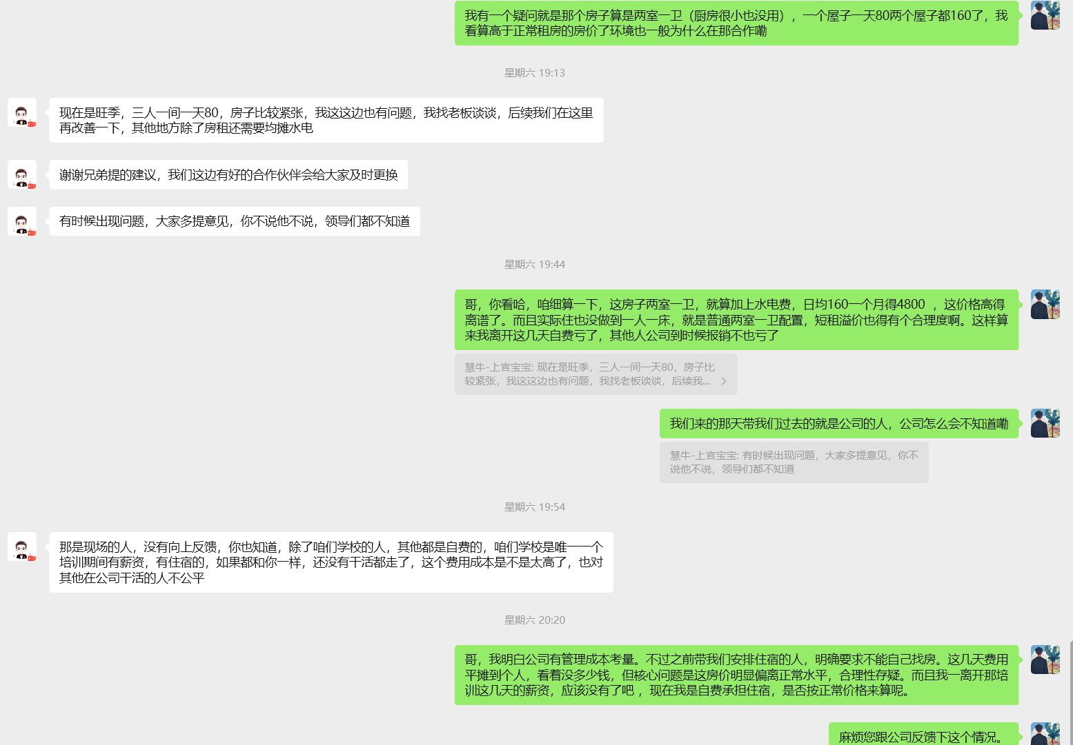 - 混乱的后勤与管理问题:恶劣的住宿条件不仅影响生活质量,更反映出公司在管理上的混乱与对员工基本需求的漠视,总体不推荐短期来此实训。
