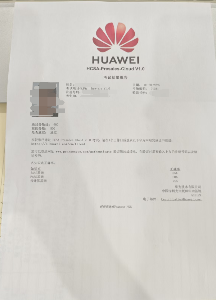 - 顺利通关:成功通过 HCSA 认证考试,获得证书及 100 元奖励。